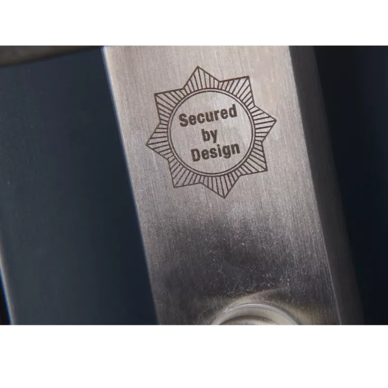 SBD logo laser etched onto external backplate, BSI Kitemark etched onto internal backplate.
