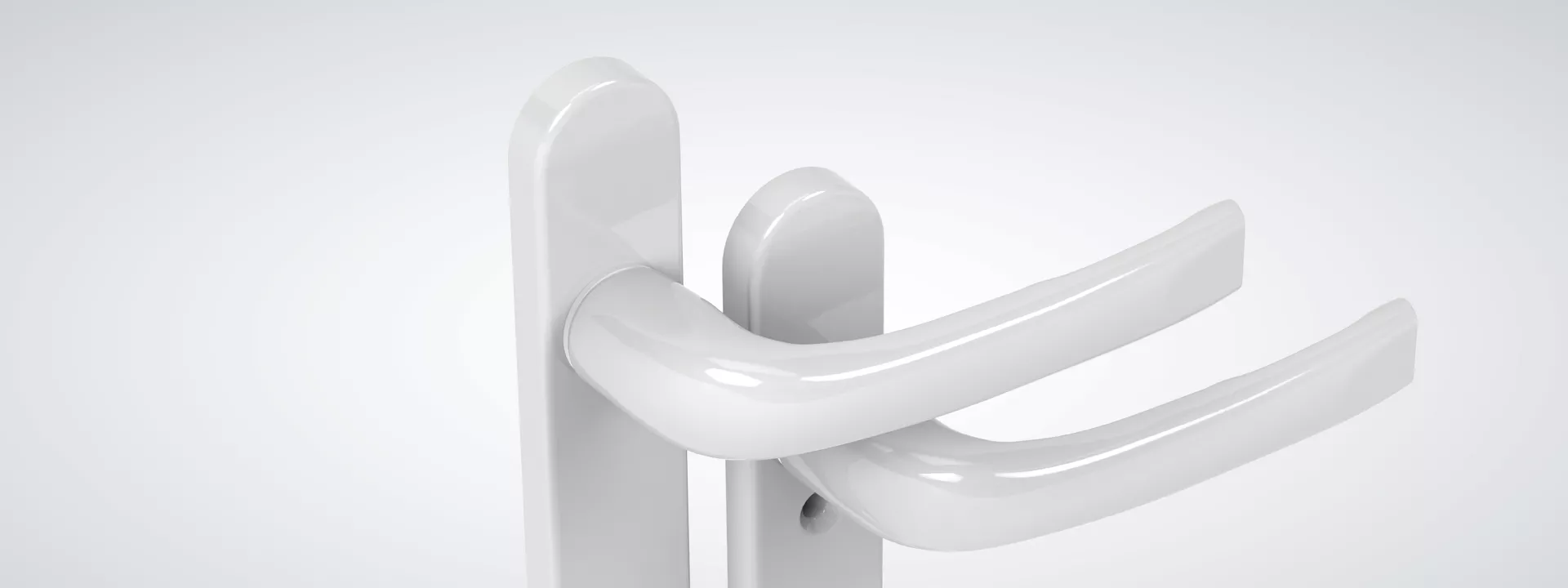 A sleek, durable door handle for homes, a reversible smooth spring-loaded lever in 6 suited finishes.