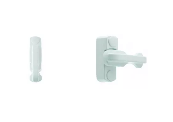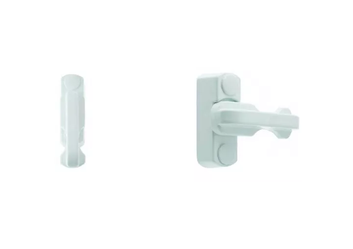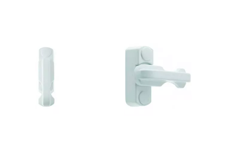 - A solid zinc arm turns through 90° to engage the Sash Block, preventing the sash from being forced open